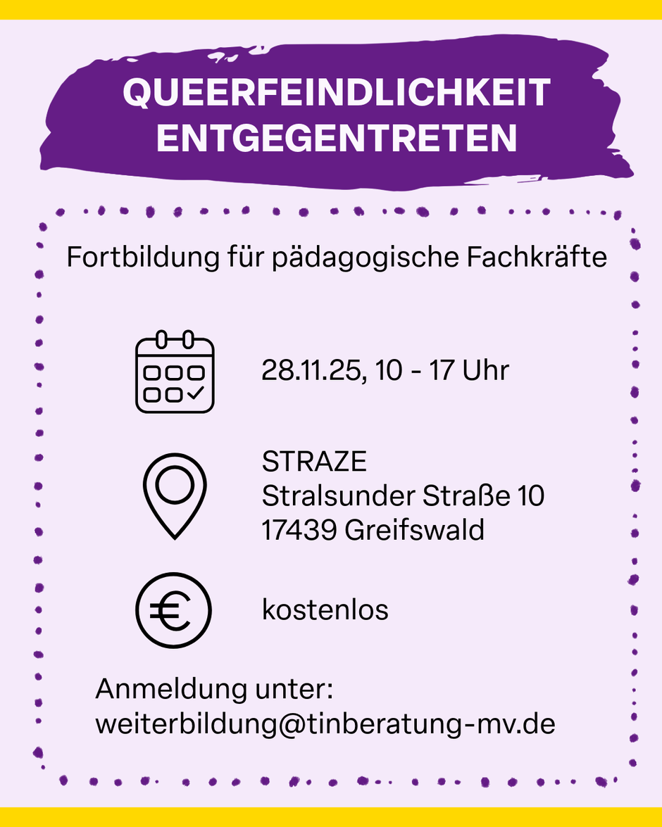 Mit dabei ist der Verein Queer e.V. Das Queere Zentrum Westmecklenburg e.V. ist ein Anlaufzentrum und Beratungsstelle fĂŒr queere Menschen. Sie setzen sich fĂŒr die Themen, BedĂŒrfnisse und Rechte von lesbischen, schwulen, bisexuellen, trans* und inter* Menschen, ihren Familien und UnterstĂŒtzenden in Wismar und im Landkreis NWM ein.Â